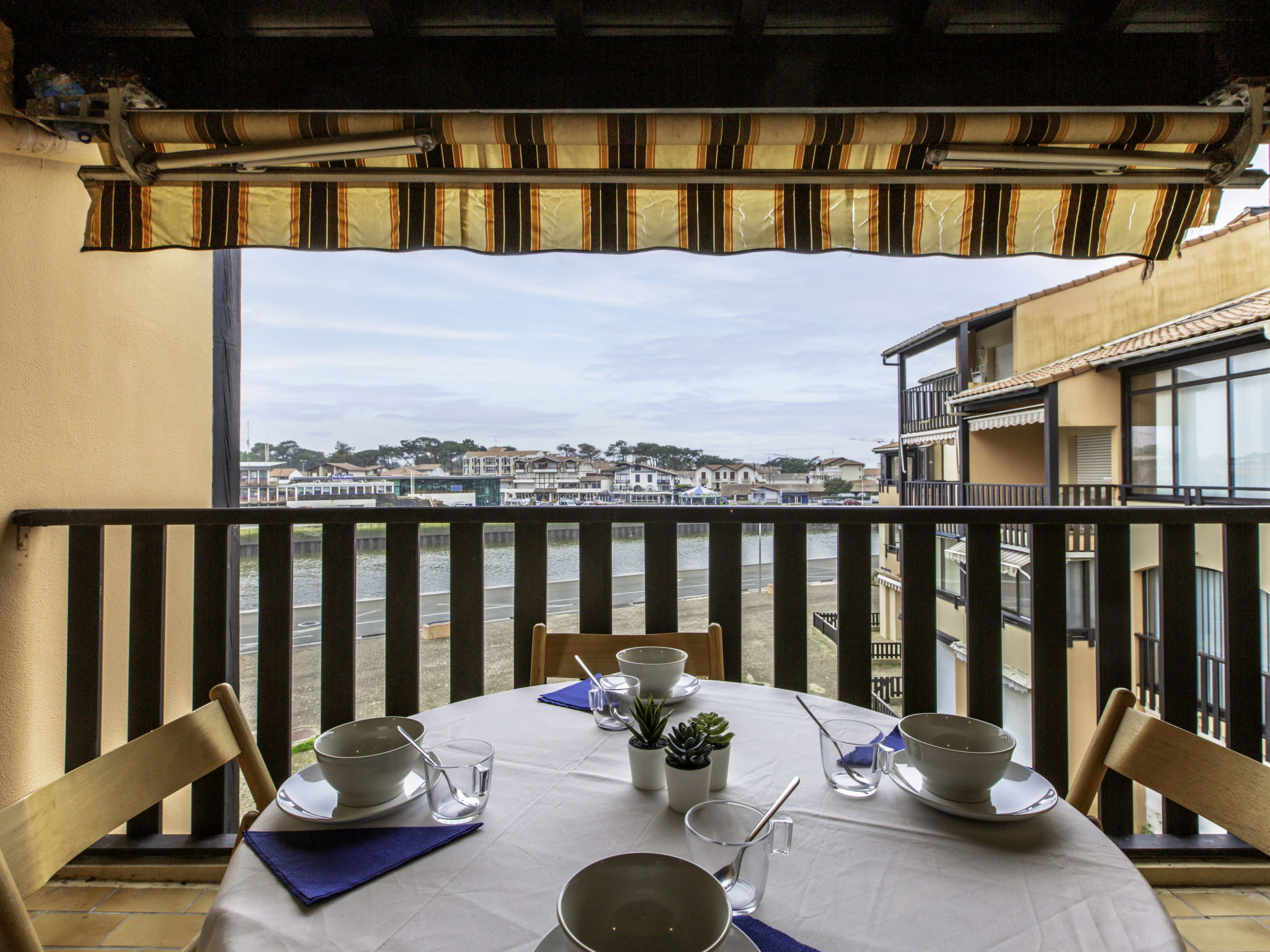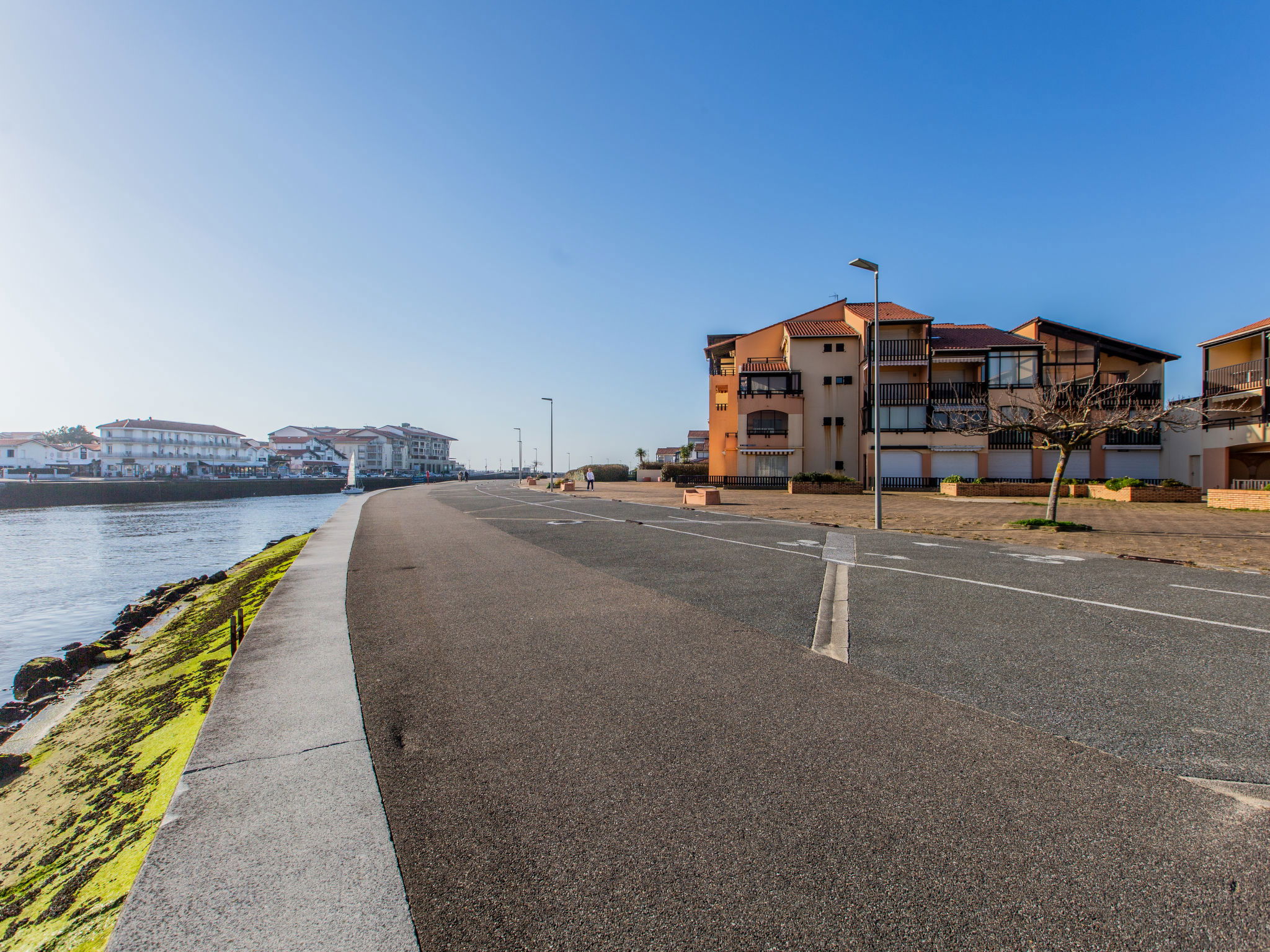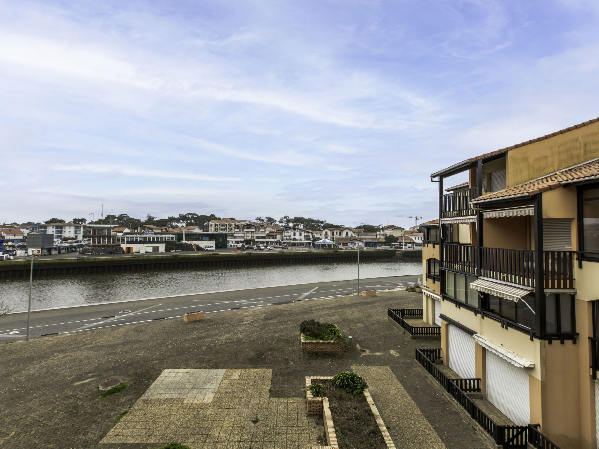 Capbreton 2 km from Hossegor: Residence "Les Terrasses Notre Dame du Port". In the district of Notre Dame, 300 m from the sea, 300 m from the lake. For shared use: swimming pool (18 x 9 m, depth 40 - 155 cm, seasonal availability: 01.Jul. - 31.Aug.). Shop, grocery 800 m, restaurant 50 m, bus stop "Parc des sports" 1.2 km. Golf course (18 hole) 3 km.