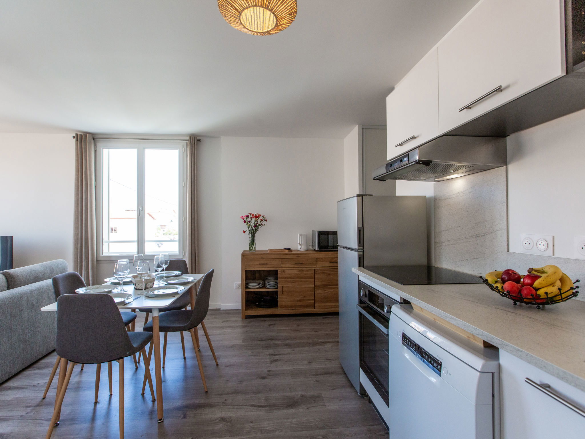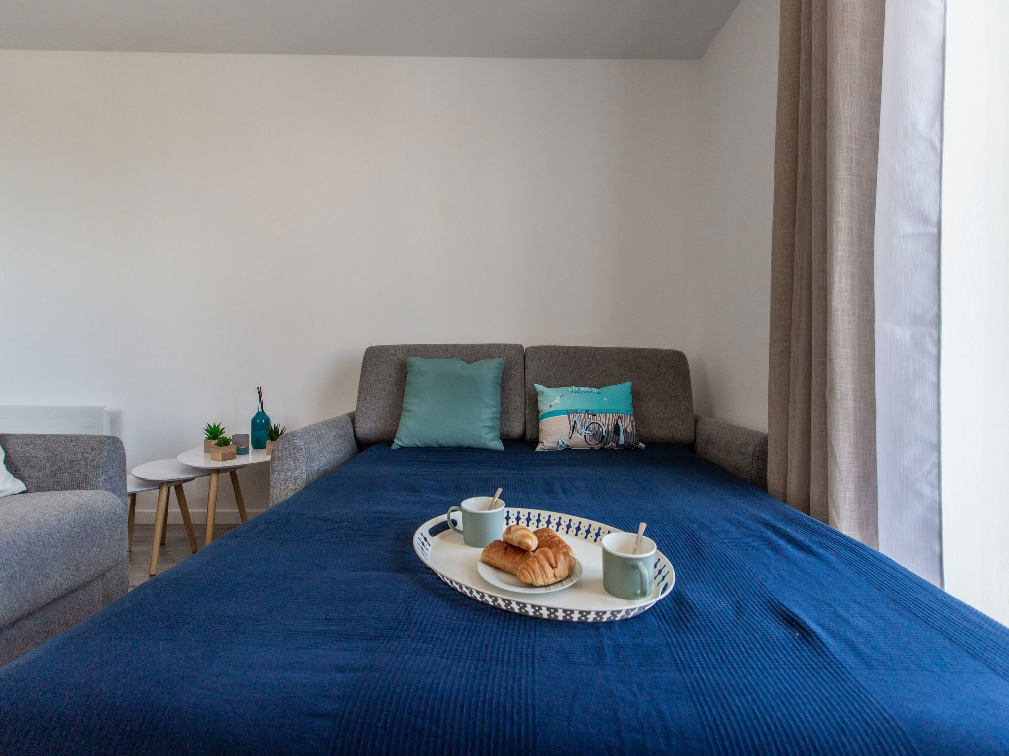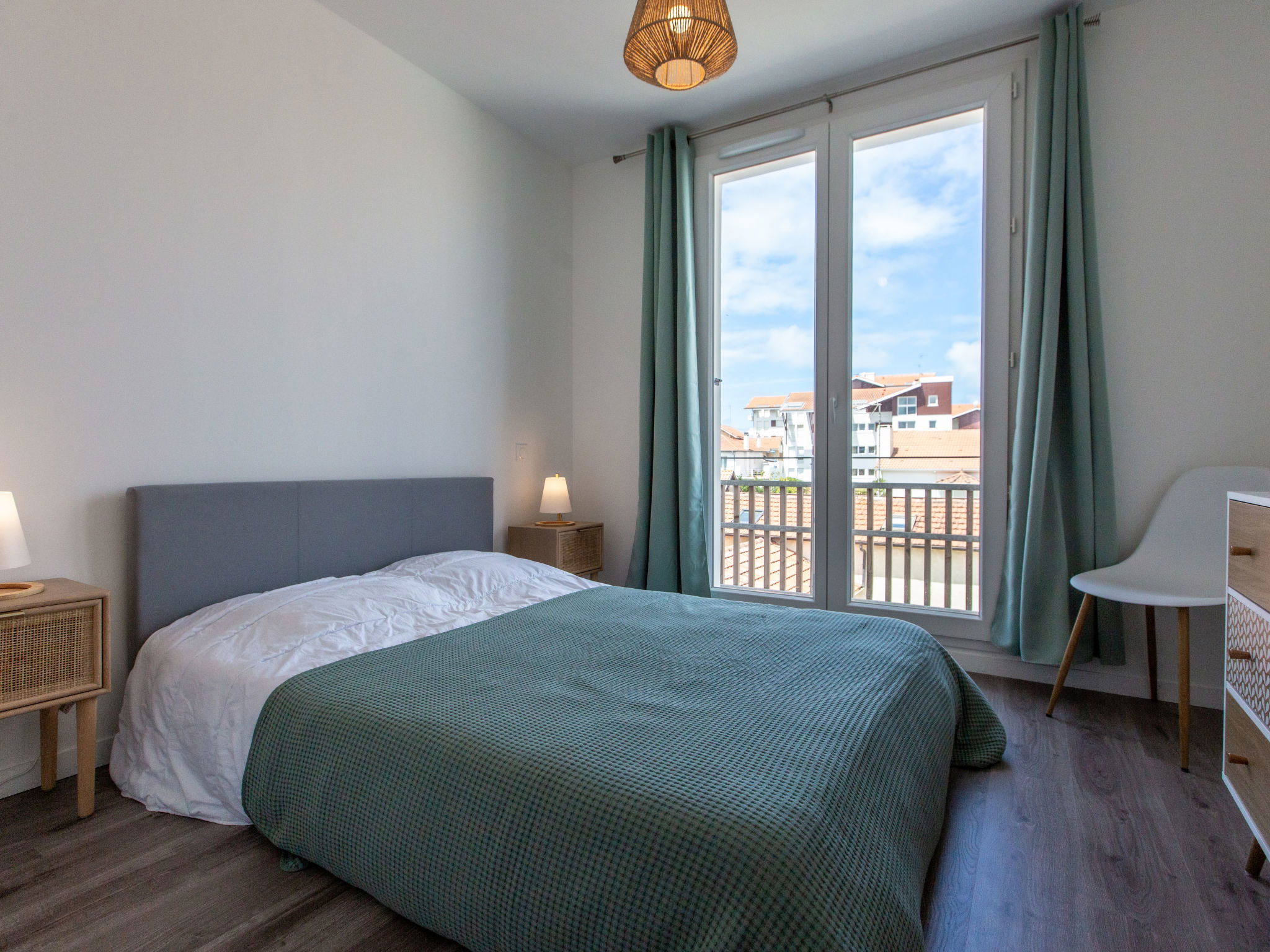 3-room apartment 60 m2 on 2nd floor. Modern and cosy furnishings: living/dining room with 1 double sofabed (140 cm, length 190 cm), TV (flat screen). Exit to the balcony. 2 rooms, each room with 1 french bed (140 cm, length 190 cm). Exit to the balcony. Open kitchen (oven, dishwasher, 4 ceramic glass hob hotplates, toaster, kettle, microwave, freezer, electric coffee machine). Bathroom, sep. WC. Electric heating. Balcony 9 m2, west facing position. Balcony furniture. Partial view of the ocean. Facilities: washing machine, hair dryer. Internet (WiFi, free). Offer by a private individual according to Art. 155, IV of CGI. 40065001457OT