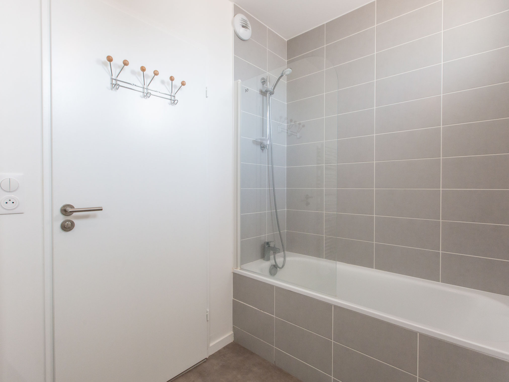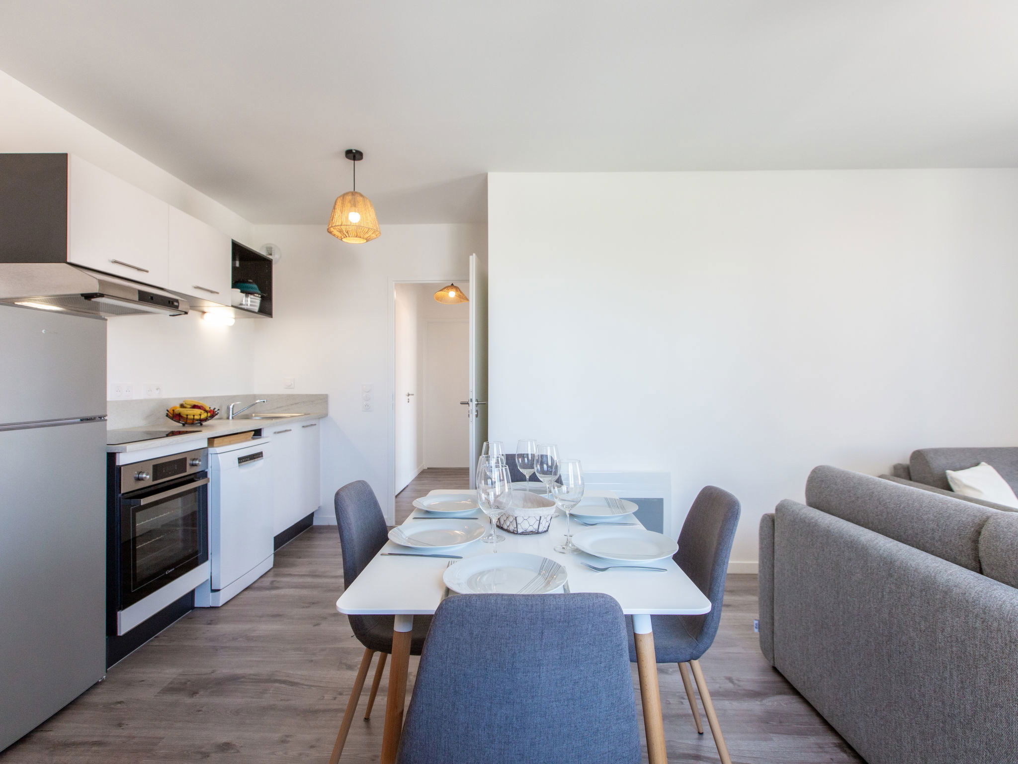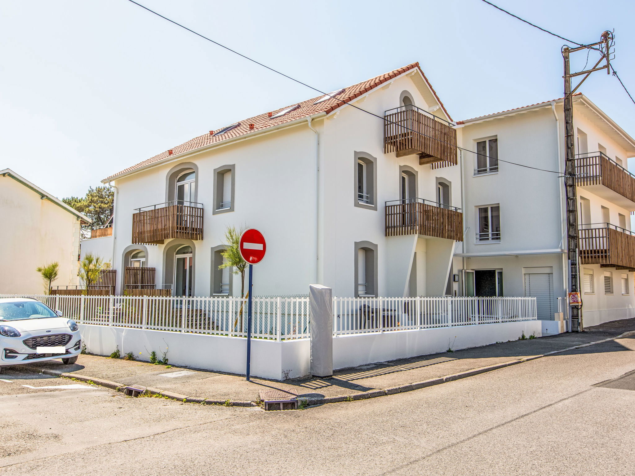 Capbreton: Apartment block "Cap Océan", 2 storeys, built in 2023. 17 apartments in the residence. In the resort, 150 m from the sea, 150 m from the beach. In the complex: washing machine, tumble dryer (for shared use). Public parking on the road. Shop 300 m, grocery 150 m, supermarket 1.8 km, restaurant 50 m, bakery 150 m, bicycle rental 100 m, bus stop "Capbreton Estacade" 300 m, sandy beach "Du Prévent" 150 m. Golf course (18 hole) 4 km, surf school 150 m, tennis 3 km, minigolf 200 m, riding stable 1 km. Nearby attractions: Seignosse 15 km, Bayonne 22 km, Dax 37 km, Biarritz 37 km. Well-known lakes can easily be reached: Réserve Naturelle des Marais d’Orx, Réserve Naturelle du courant d’Huchet.
