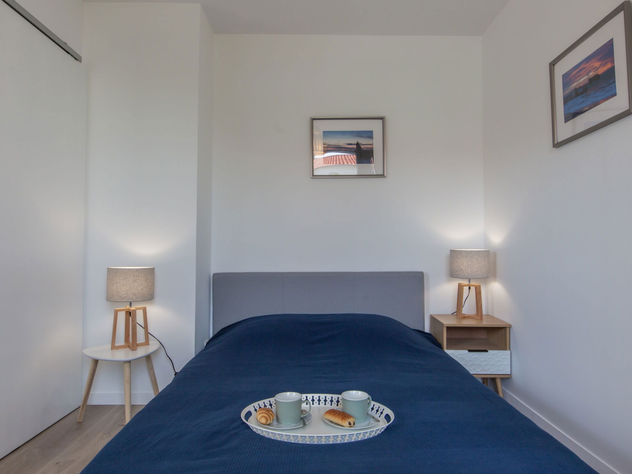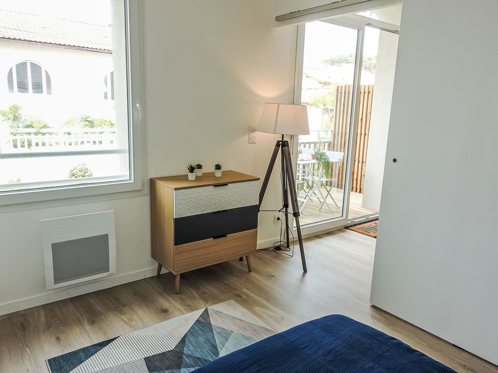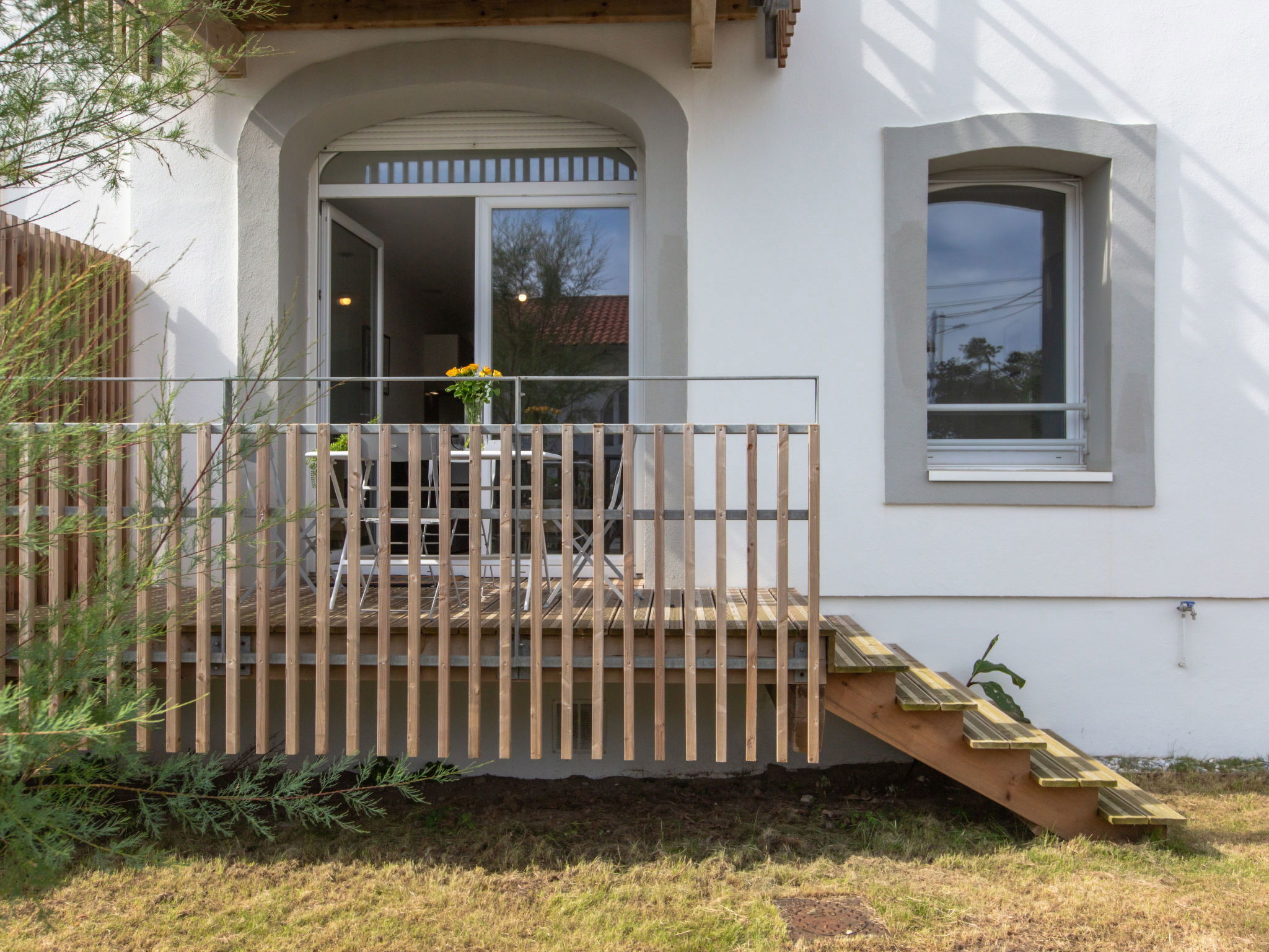 Capbreton: Apartment block "Cap Océan", 2 storeys, built in 2023. 17 apartments in the residence. In the resort, 150 m from the sea, 150 m from the beach. In the complex: washing machine, tumble dryer (for shared use). Public parking on the road. Shop 300 m, grocery 150 m, supermarket 1.8 km, restaurant 50 m, bakery 150 m, bicycle rental 100 m, bus stop "Capbreton Estacade" 300 m, sandy beach "Du Prévent" 150 m. Golf course (18 hole) 4 km, surf school 150 m, tennis 3 km, minigolf 200 m, riding stable 1 km. Nearby attractions: Seignosse 15 km, Bayonne 22 km, Dax 37 km, Biarritz 37 km. Well-known lakes can easily be reached: Réserve Naturelle des Marais d’Orx, Réserve Naturelle du courant d’Huchet.