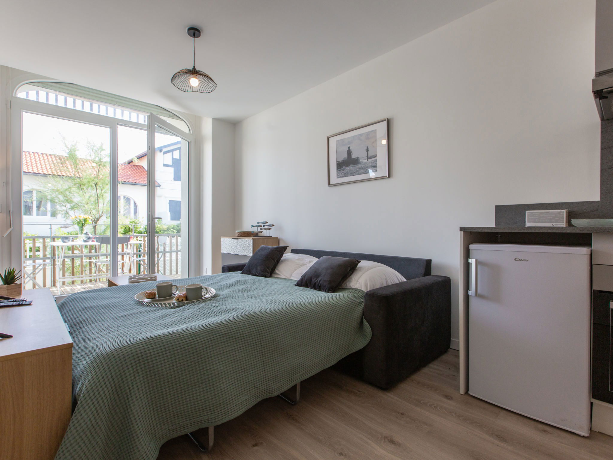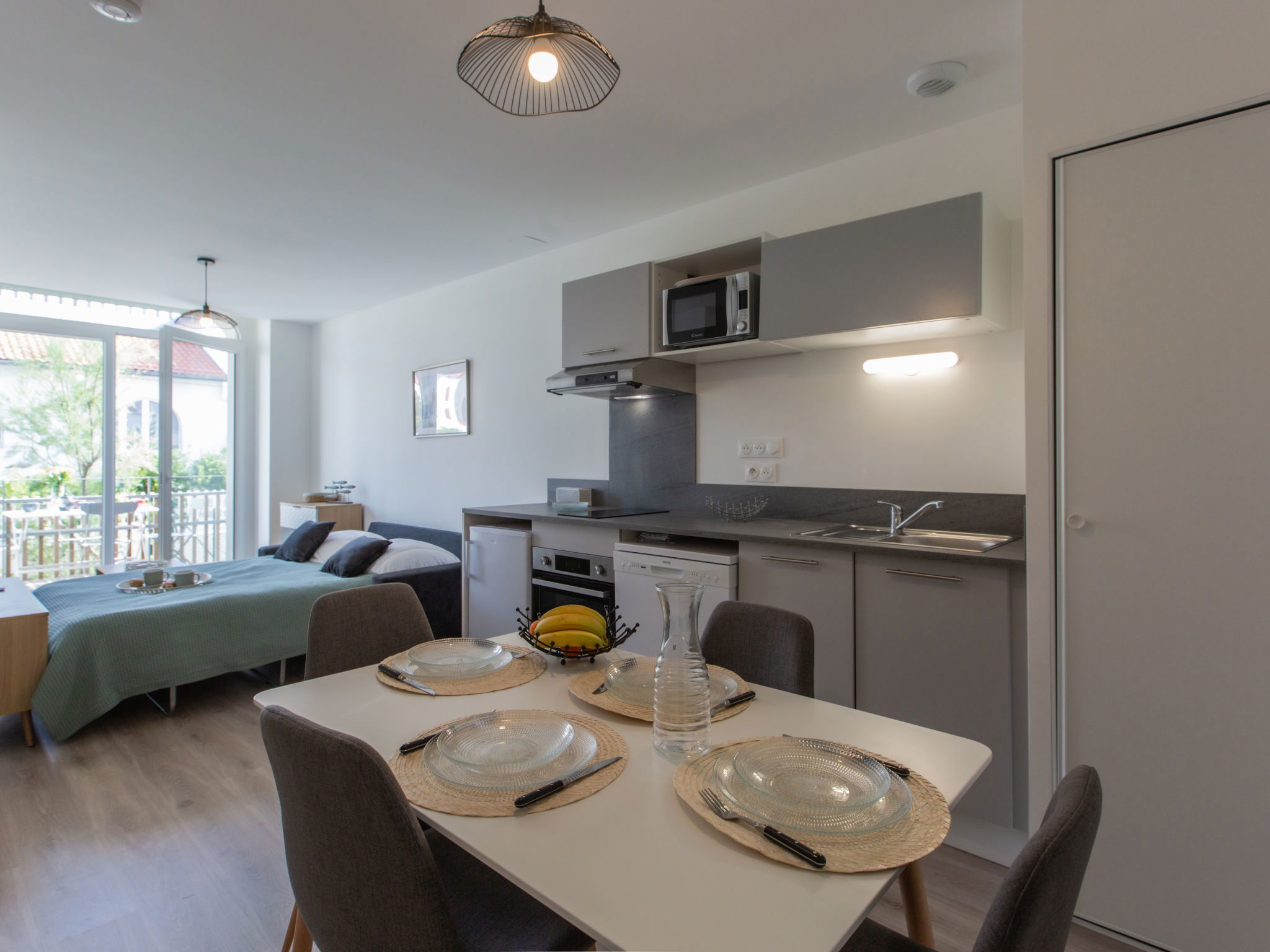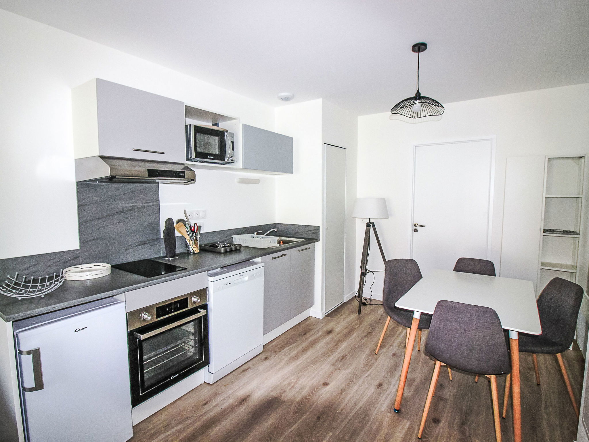 Capbreton: Apartment block "Cap Océan", 2 storeys, built in 2023. 17 apartments in the residence. In the resort, 150 m from the sea, 150 m from the beach. In the complex: washing machine, tumble dryer (for shared use). Public parking on the road. Shop 300 m, grocery 150 m, supermarket 1.8 km, restaurant 50 m, bakery 150 m, bicycle rental 100 m, bus stop "Capbreton Estacade" 300 m, sandy beach "Du Prévent" 150 m. Golf course (18 hole) 4 km, surf school 150 m, tennis 3 km, minigolf 200 m, riding stable 1 km. Nearby attractions: Seignosse 15 km, Bayonne 22 km, Dax 37 km, Biarritz 37 km. Well-known lakes can easily be reached: Réserve Naturelle des Marais d’Orx, Réserve Naturelle du courant d’Huchet.