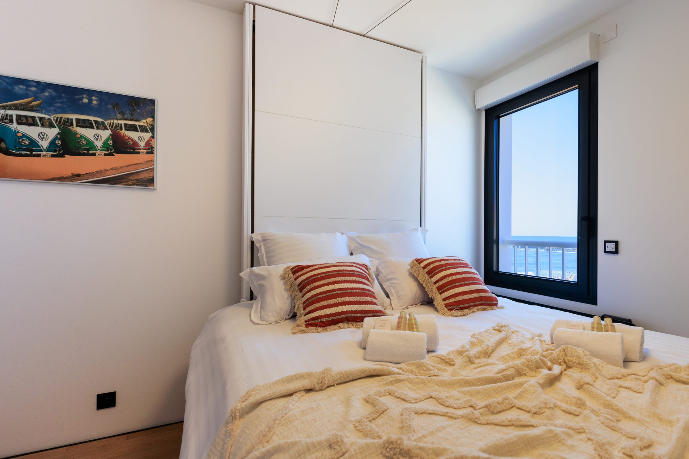 → Before your arrival and after your departure, our team performs hotel-quality housekeeping and provides you with towels, hotel-quality bed linen and a line of natural skincare products.