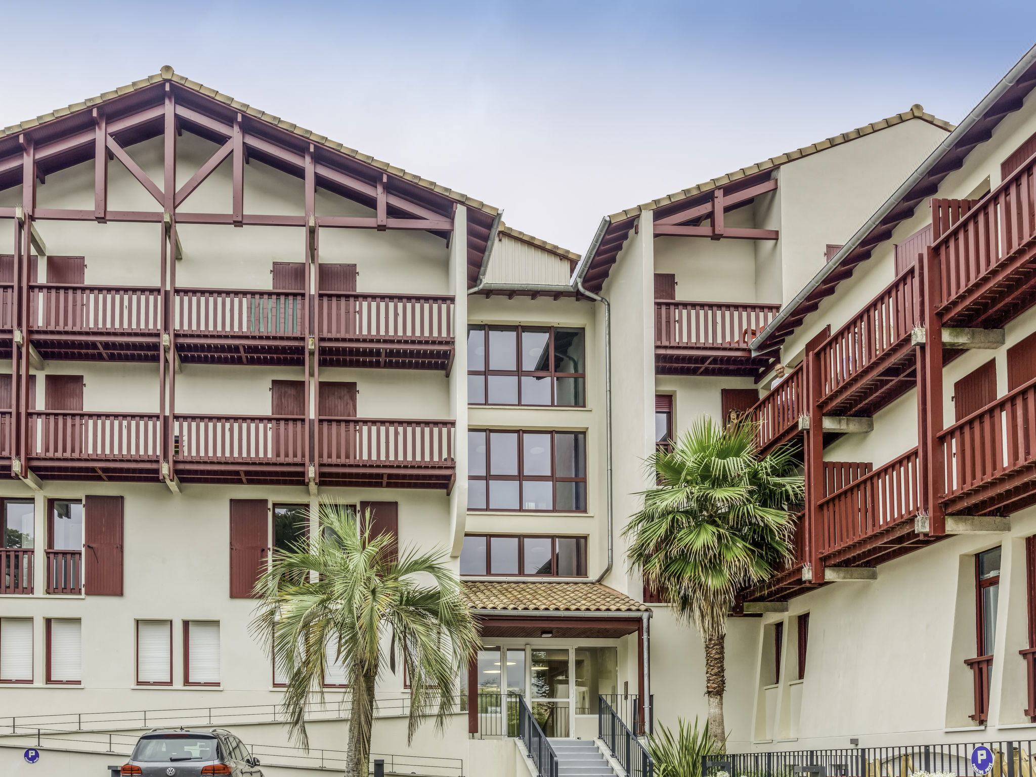 Hossegor: Residence "la Pergola", built in 2018. In the centre of Hossegor, in a central position, excellent location: right in the centre but still quiet, 1 km from the sea, 50 m from the lake, east facing position. Parking. Shop, grocery 50 m, supermarket 1 km, restaurant, bar, bakery, café, bicycle rental 50 m, bus stop "soorts hossegor- office tourisme" 350 m, sandy beach 1 km. Golf course (18 hole) 1 km. Groups of teenagers on request only.