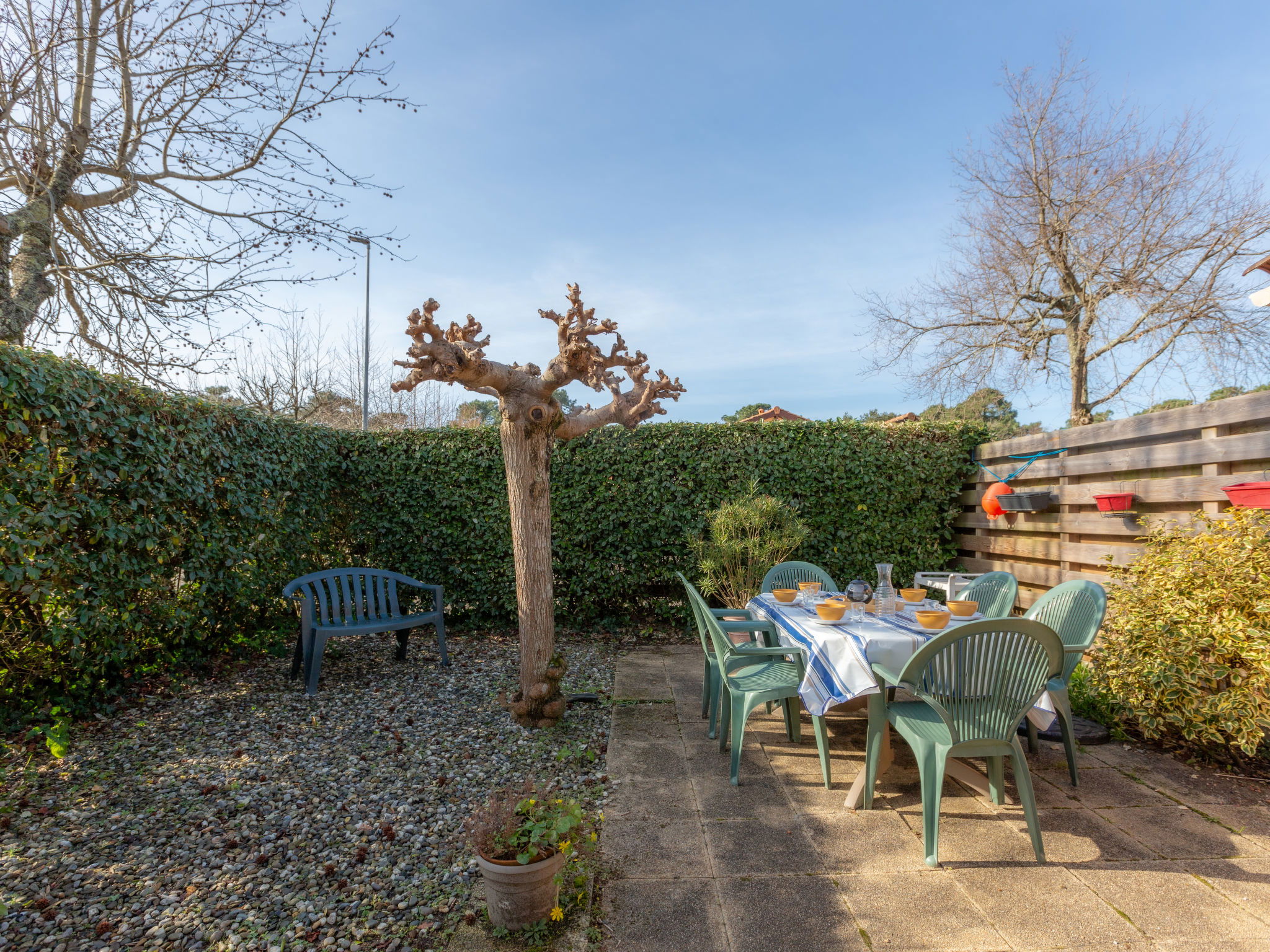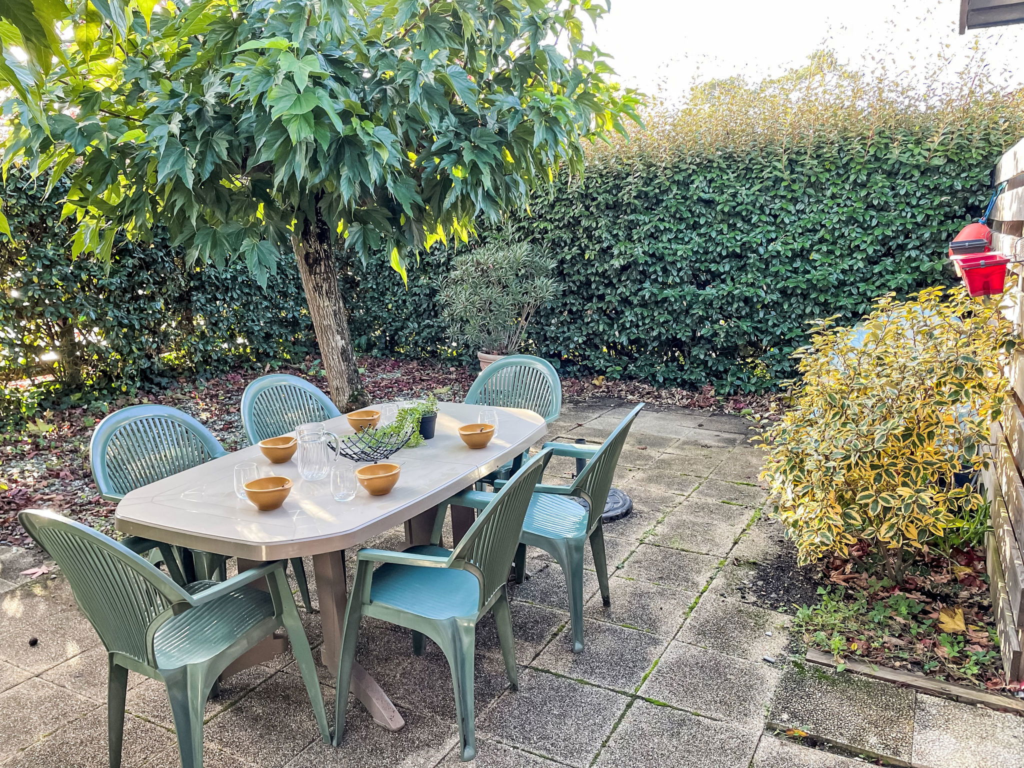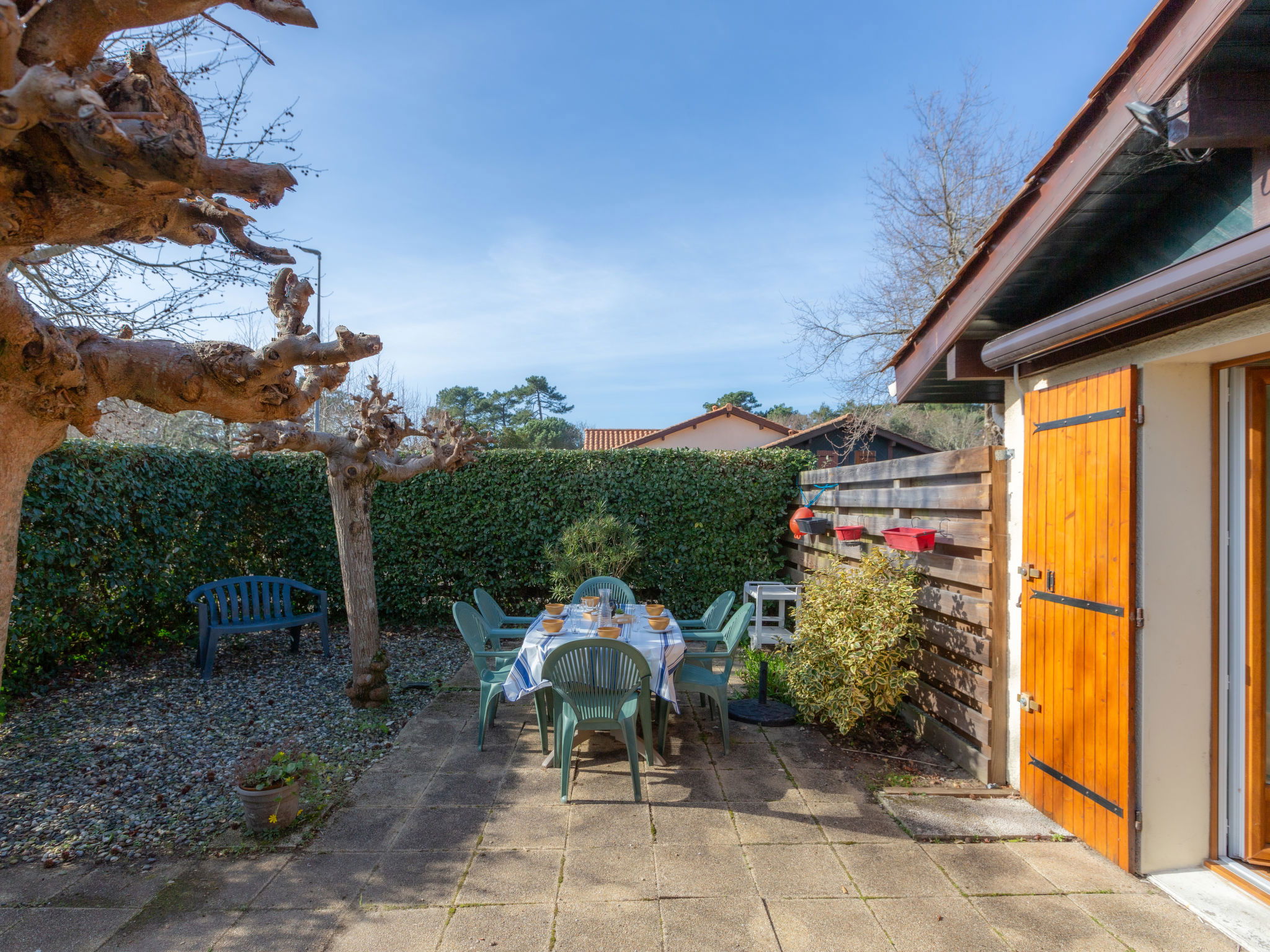 Capbreton 2 km from Hossegor: The residence "Paradise Ocean" is a group of 180 terraced houses. Residence "Paradise Océan". In the resort, 800 m from the centre, 1.2 km from the sea, 8 km from the lake, 1.2 km from the beach. For shared use: swimming pool (8 x 15 m, depth 160 cm, seasonal availability: 15.Jul. - 15.Sep.). Parking (limited number of spaces) at the house. Shop, restaurant 800 m, bus stop 1.2 km, sandy beach 1.2 km. Golf course (18 hole) 8 km. Please note: the photograph shows a typical example. Additional accommodations can be booked.