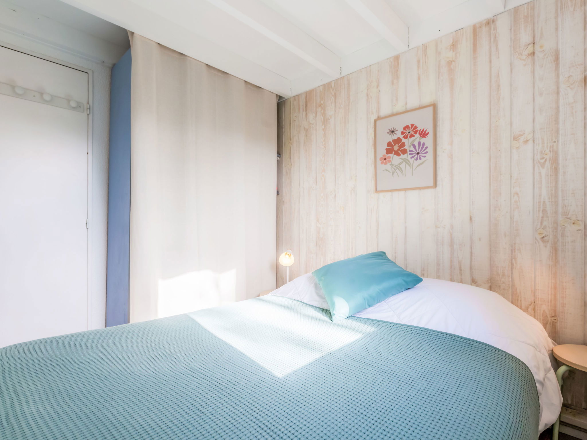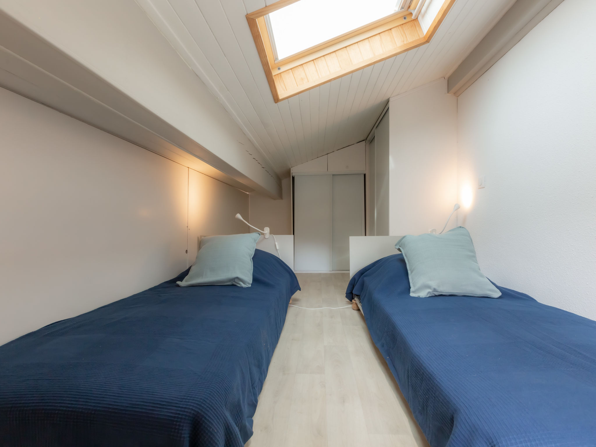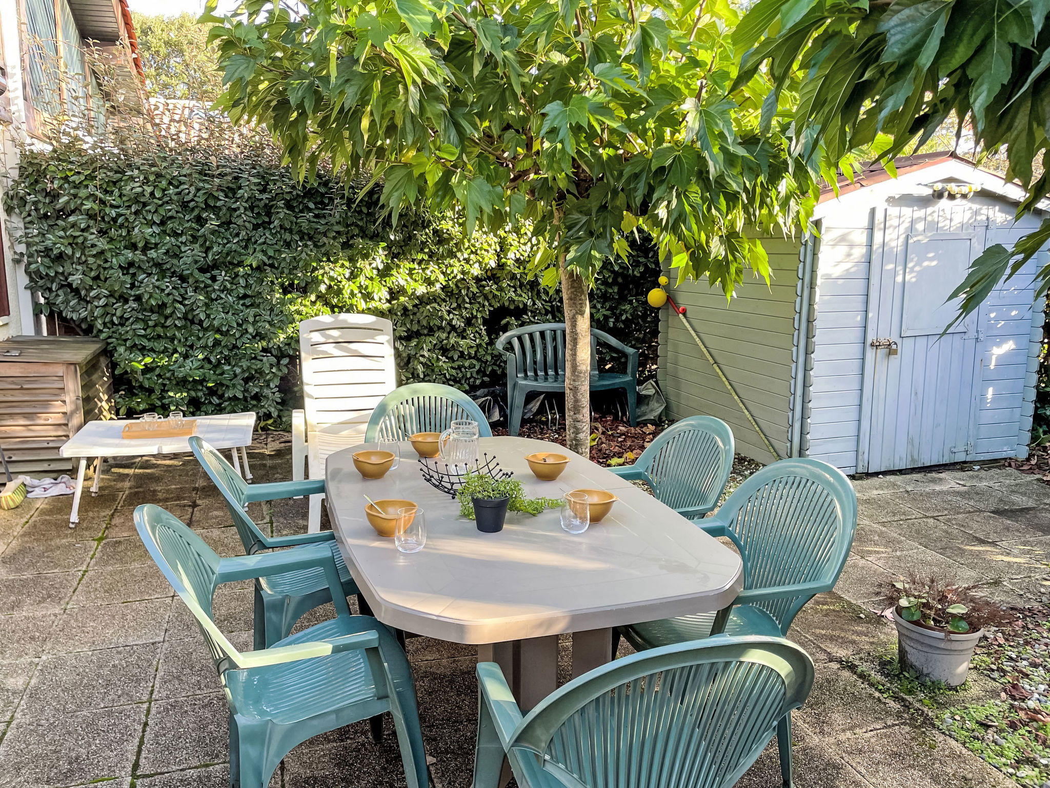 2-room terraced house 25 m2 on 2 levels. Object suitable for 2 adults + 2 children. Living/dining room with TV (flat screen), air conditioning. Exit to the terrace, to the patio. 1 room with 1 french bed (140 cm, length 190 cm). Kitchenette (2 hot plates, oven, dishwasher, toaster, kettle, microwave). Shower, sep. WC. Electric heating. Upper floor: (steep stair), 1 open children's room with sloping ceilings, ceiling height 80 - 170 cm. Terrace 30 m2. Terrace furniture. Facilities: washing machine, iron. Internet (WiFi, extra). Please note: non-smokers only. Smoke alarm. Offer by a private individual according to Art. 155, IV of CGI. 40065002406GW