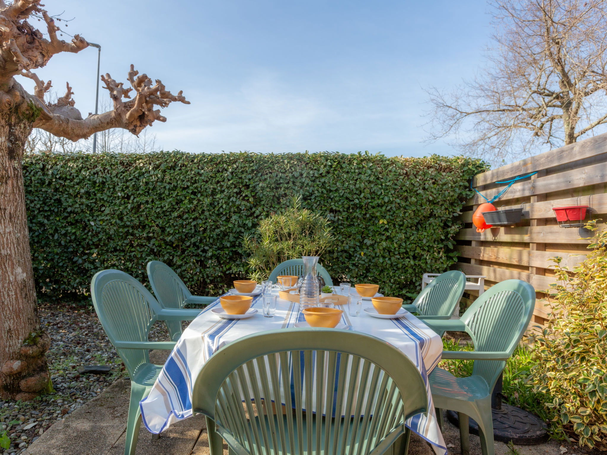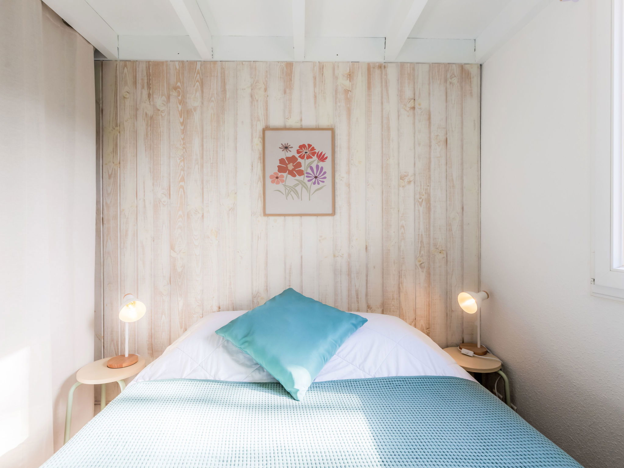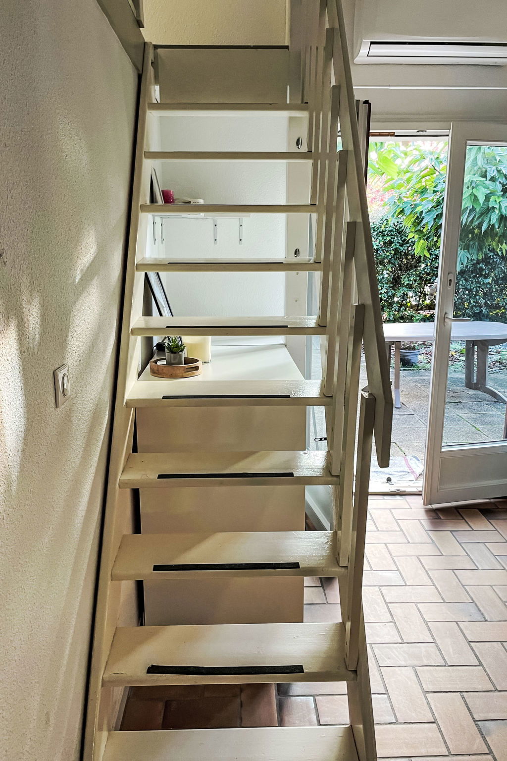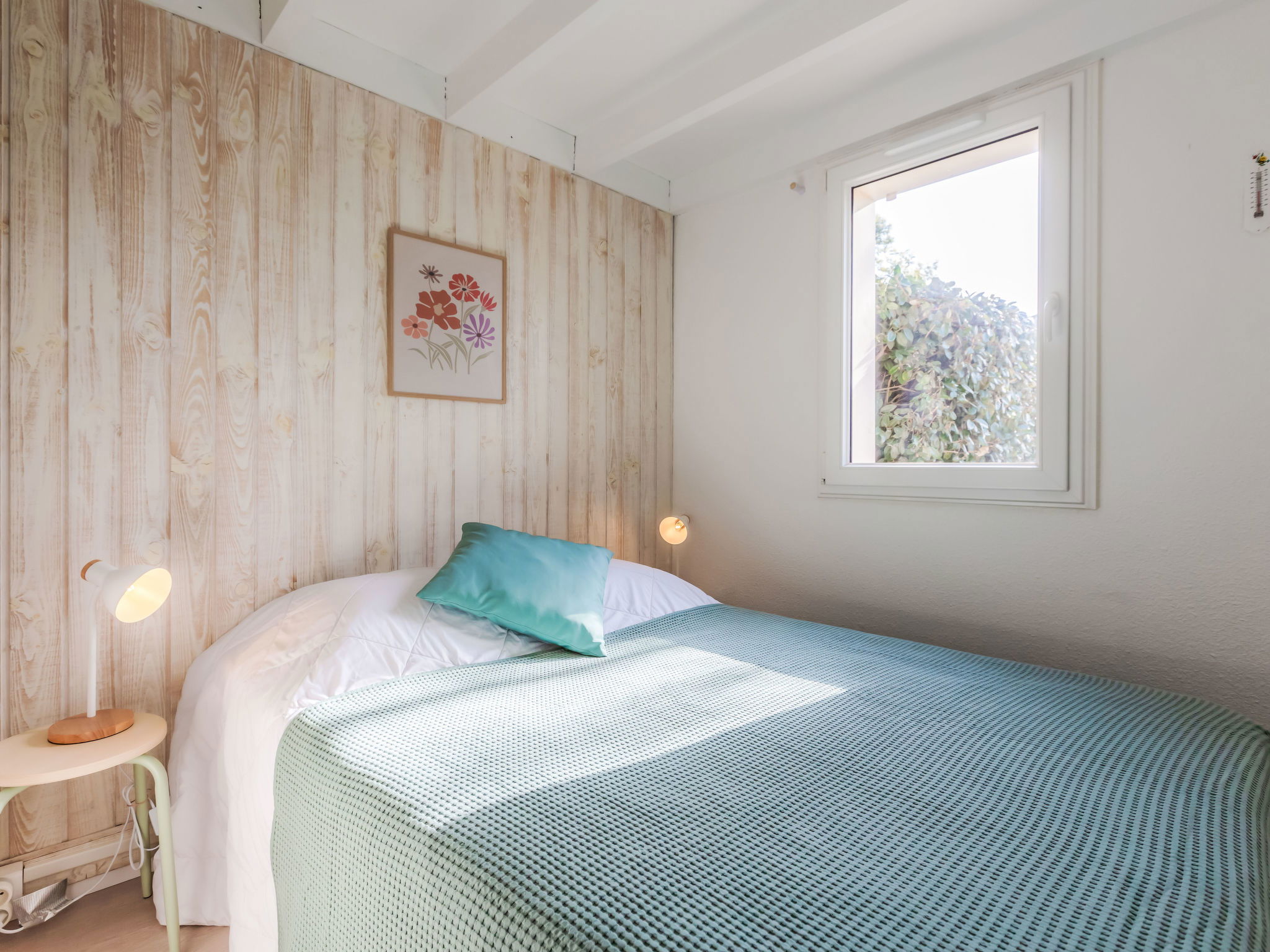 2-room terraced house 25 m2 on 2 levels. Object suitable for 2 adults + 2 children. Living/dining room with TV (flat screen), air conditioning. Exit to the terrace, to the patio. 1 room with 1 french bed (140 cm, length 190 cm). Kitchenette (2 hot plates, oven, dishwasher, toaster, kettle, microwave). Shower, sep. WC. Electric heating. Upper floor: (steep stair), 1 open children's room with sloping ceilings, ceiling height 80 - 170 cm. Terrace 30 m2. Terrace furniture. Facilities: washing machine, iron. Internet (WiFi, extra). Please note: non-smokers only. Smoke alarm. Offer by a private individual according to Art. 155, IV of CGI. 40065002406GW