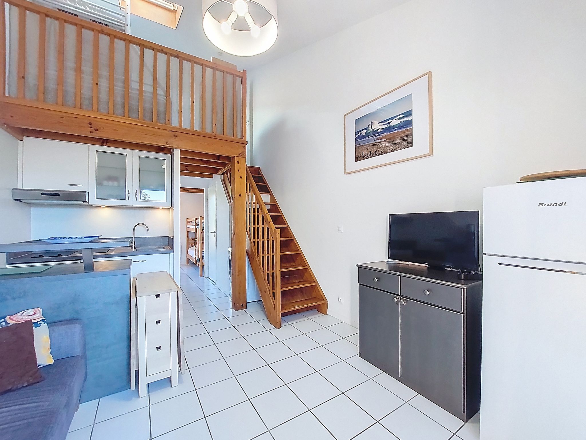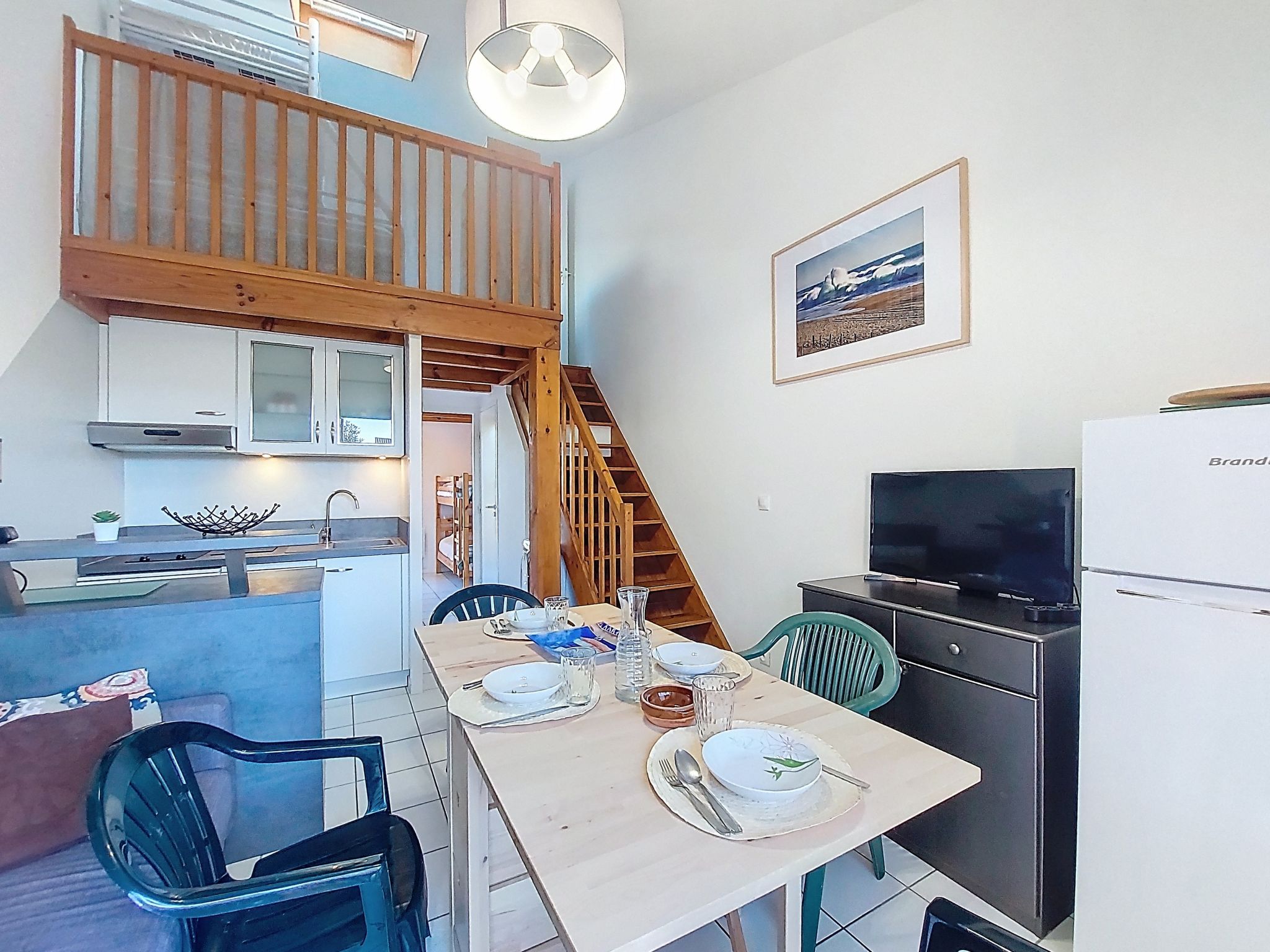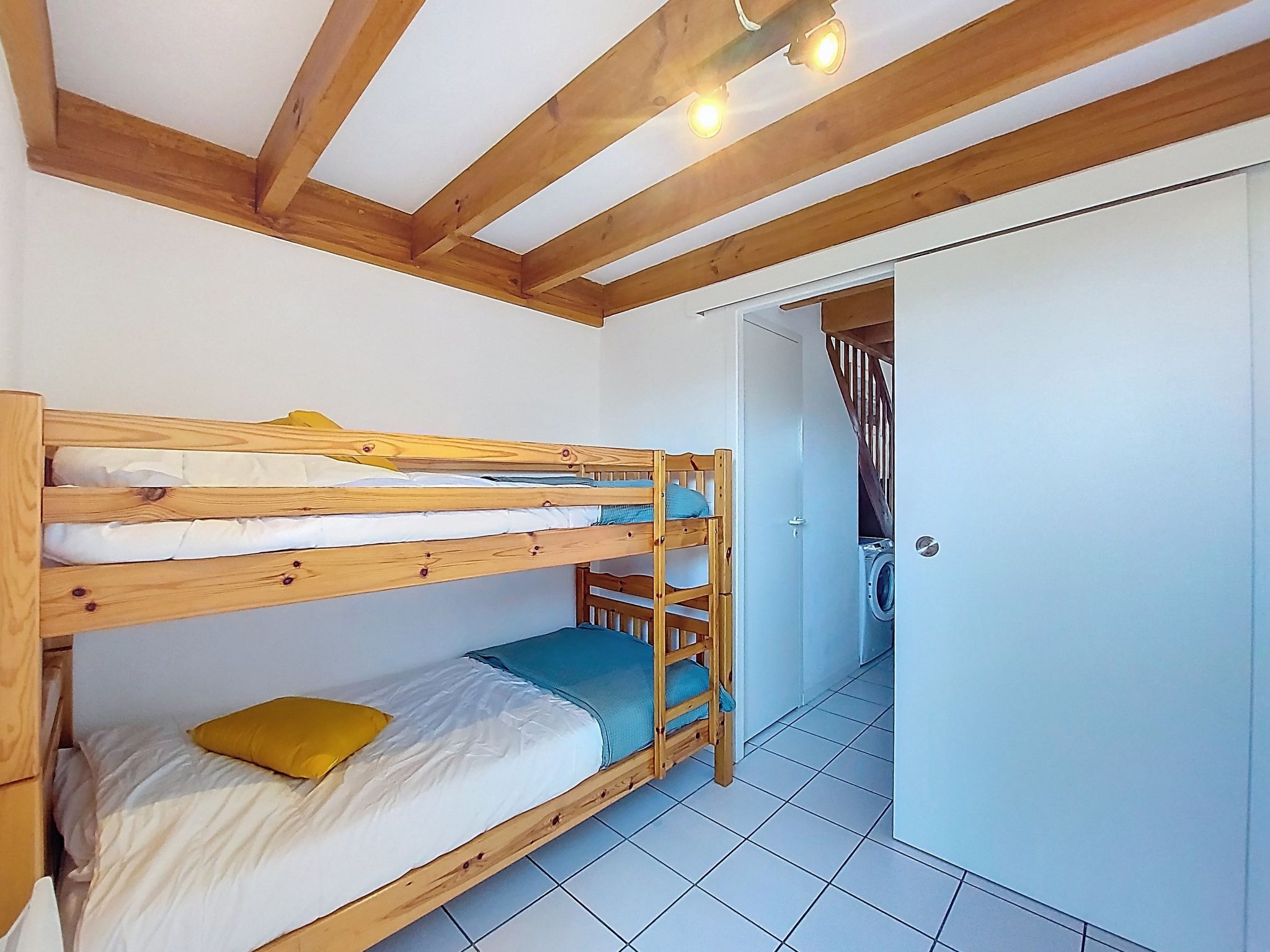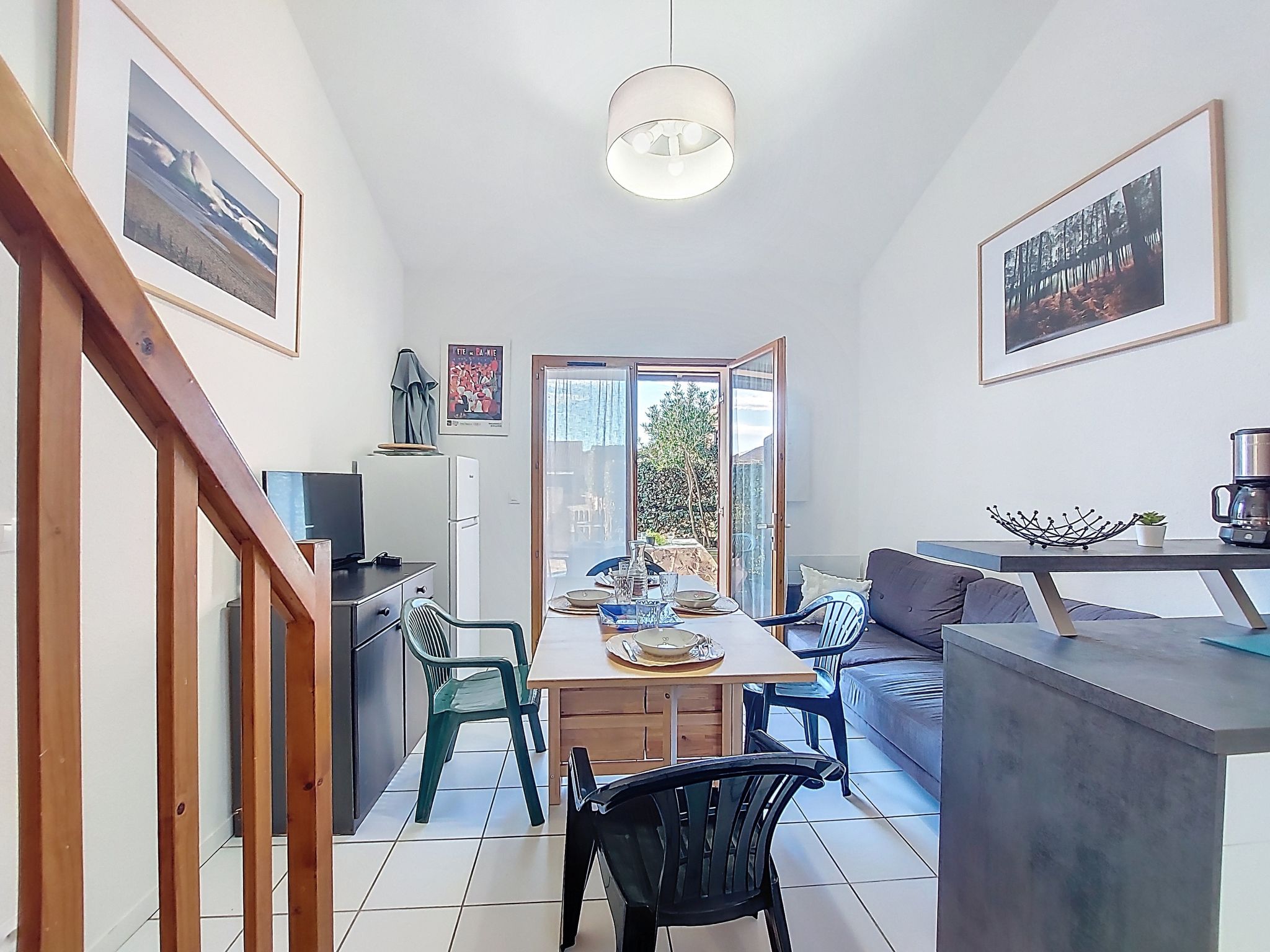 3-room terraced house 40 m2 on 2 levels. Comfortable furnishings: living/dining room with TV (flat screen). Exit to the terrace. 1 room with 1 x 2 bunk beds (90 cm, length 190 cm). Exit to the terrace. Kitchenette (2 hot plates, dishwasher, toaster, kettle, microwave, freezer, electric coffee machine). Shower, sep. WC. Electric heating. Upper floor: 1 room with 1 french bed (1 x 140 cm, length 190 cm). Terrace furniture. Facilities: washing machine, iron, hair dryer. Internet (WiFi, extra). Parking space n 14 et 10 (fenced 2 cars). Please note: smoke alarm. Offer by a private individual according to Art. 155, IV of CGI. 4006500289171