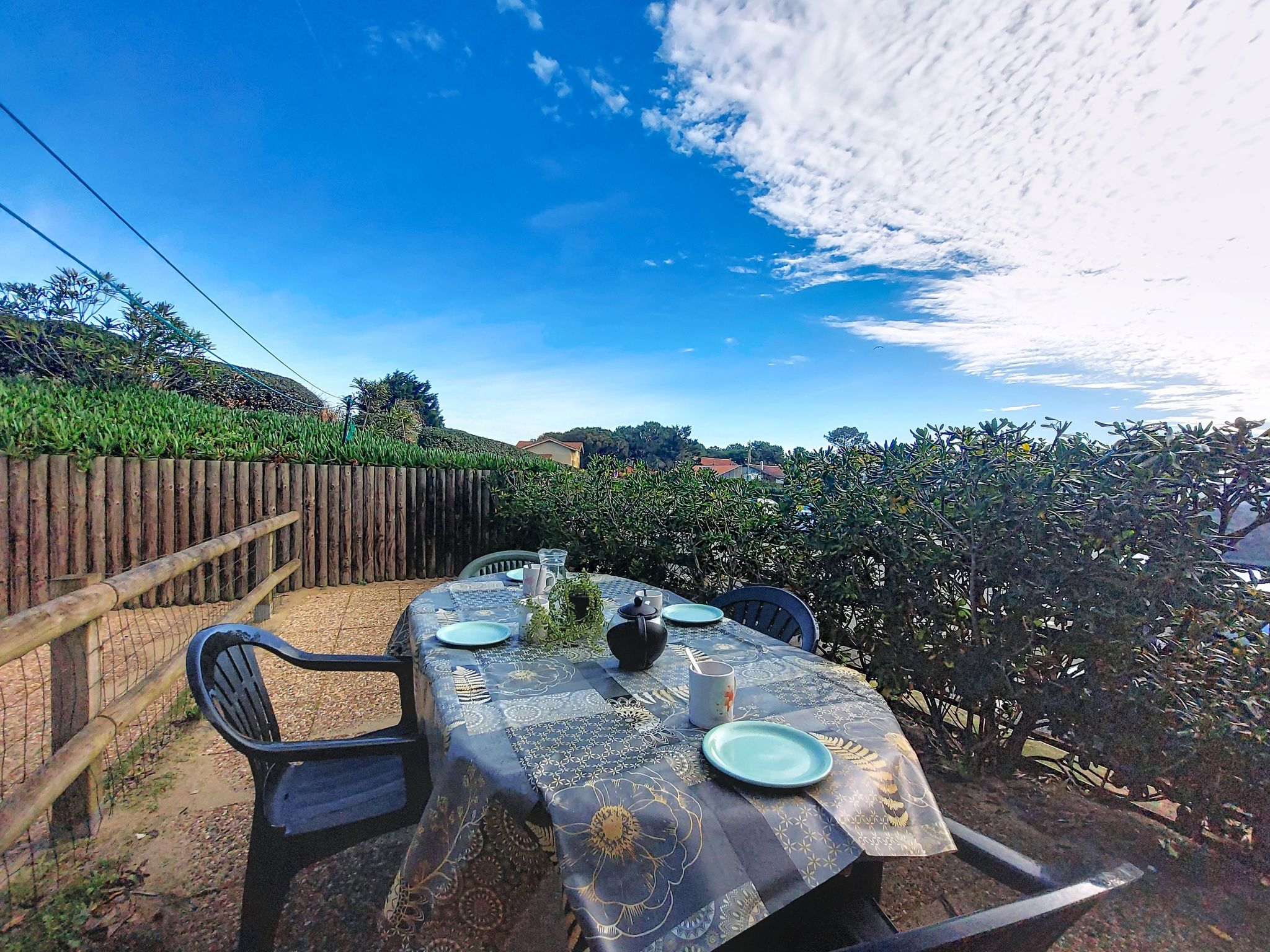 Capbreton 2 km from Hossegor: The residence "Plage Sud" comprises of 25 terraced houses, is located at 100 m from the Savane beach at Capbreton (sand dune to cross) terraced house "Plage sud". 100 m from the sea, 6 km from the lake. For shared use: swimming pool (10 x 8 m, depth 90 - 200 cm, seasonal availability: 15.Jun. - 15.Sep.). Parking. Grocery, restaurant 800 m, bus stop 300 m, sandy beach "La Savane" 100 m. Golf course (18 hole) 5 km.
