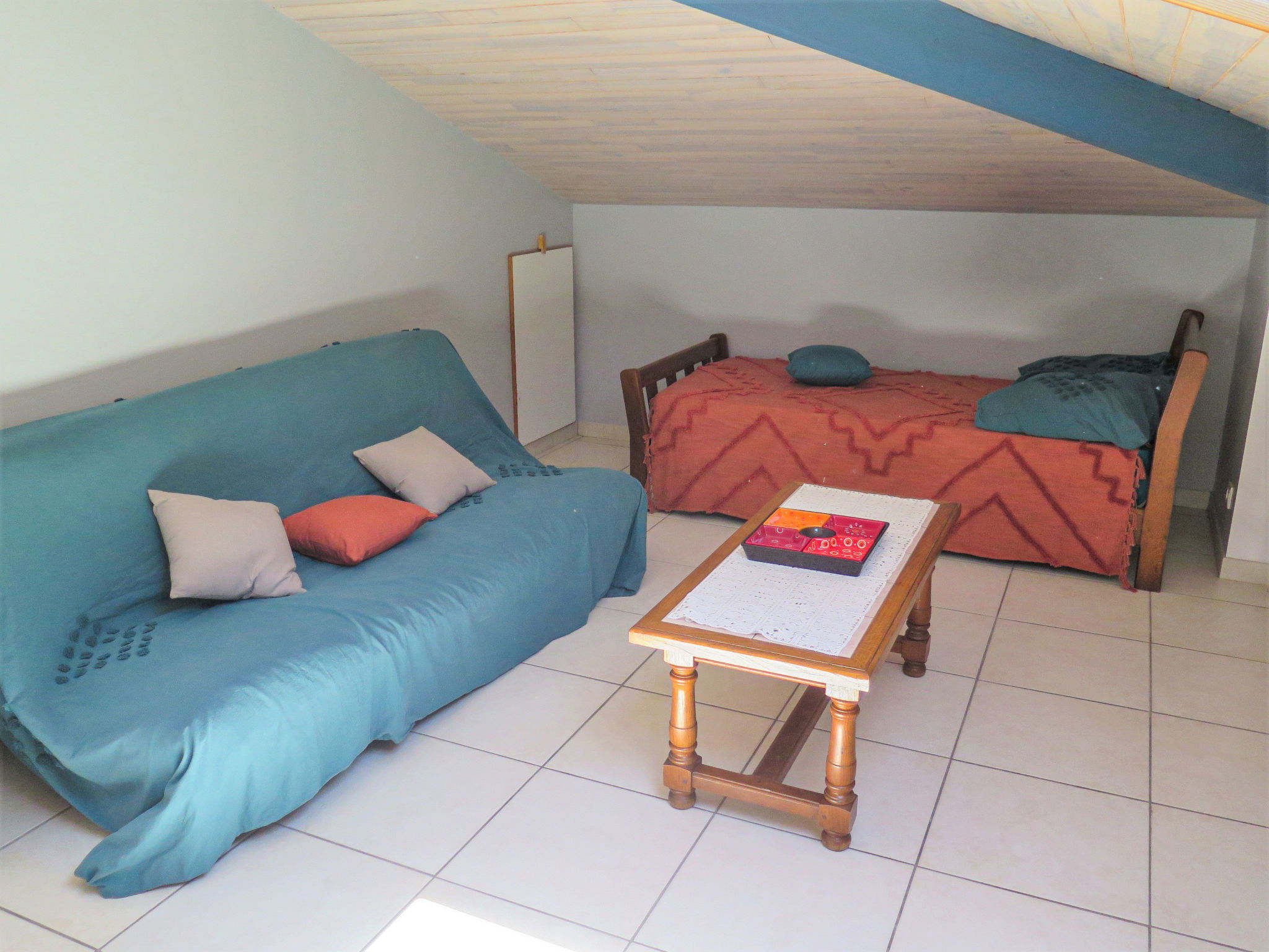 "Le Moïsan", 4-room house 120 m2 on 2 levels. Bright, cosy furnishings: living/dining room with dining table and satellite TV (flat screen), radio, CD-player and DVD. Exit to the terrace. 1 room with 1 french bed (140 cm, length 190 cm). 1 room with 2 beds (90 cm, length 190 cm). Open kitchen (3 hot plates, oven, dishwasher, 1 gas rings, toaster, kettle, microwave, electric coffee machine) with dining table. Bath/shower, sep. WC. Upper floor: open gallery with sloping ceilings. 1 room with sloping ceilings with 2 beds (90 cm, length 190 cm). Electric heating. Terrace partly roofed. Terrace furniture, barbecue (portable), deck chairs (5). Facilities: washing machine, children's high chair, baby cot (extra). Internet (WiFi, free). Please note: non-smoking house. Maximum 1 pet/ dog allowed. Smoke alarm. Instead of an enclosed bedroom, some sleeping areas are located in an open-plan area (gallery, alcove, etc.). Offer by a private individual according to Art. 155, IV of CGI. 401810190630