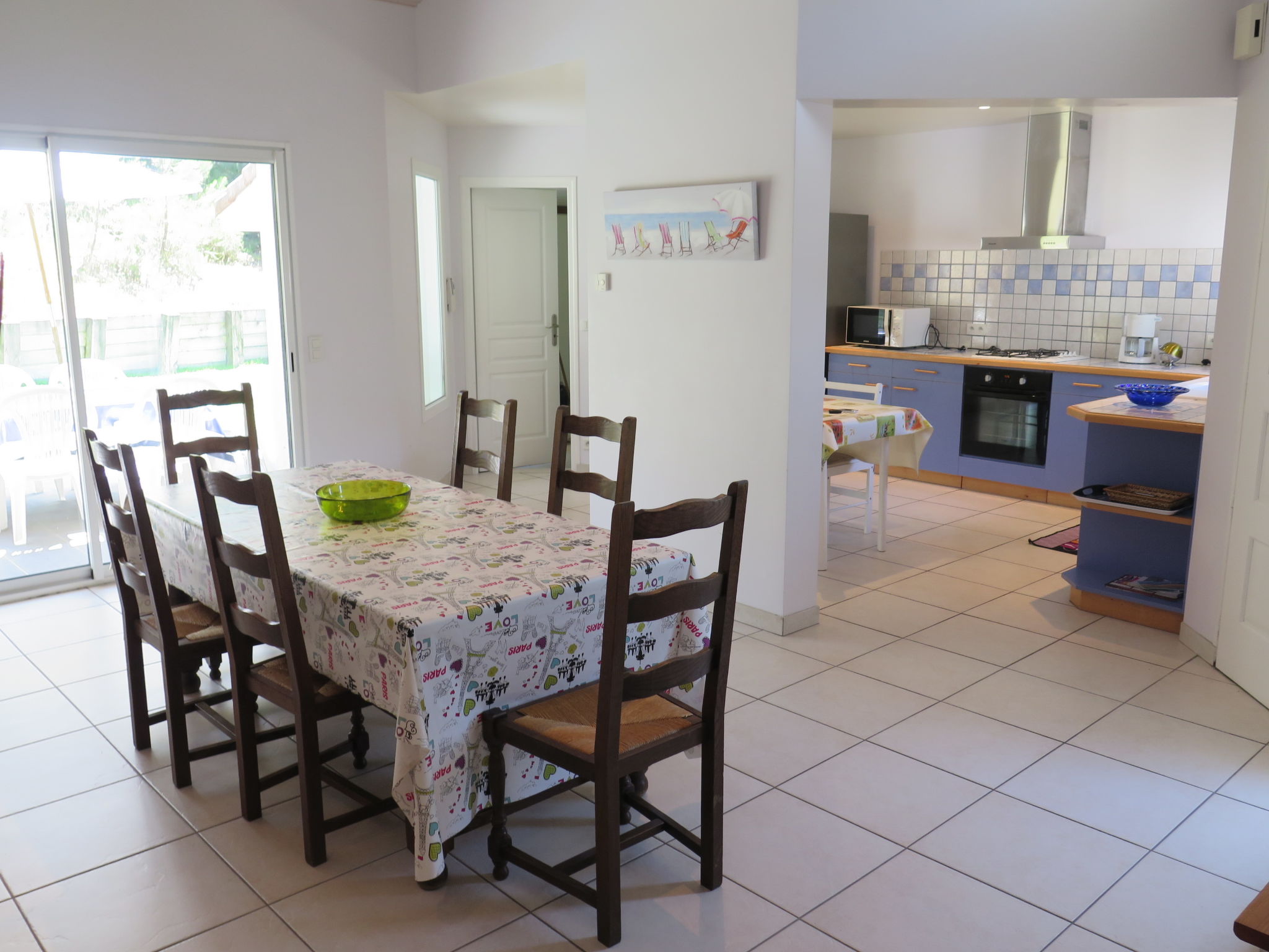 Cosy single-family house "Le Moïsan". In the district of Moïsan 1.5 km from the centre of Messanges, 5 km from the centre of Vieux-Boucau, 65 km from the centre of Biarritz, in the residential district, 2 km from the sea, 2 km from the beach, in a cul-de-sac. Private: natural state property 800 m2 (fenced) with lawn, parking at the house on the premises, single garage. Shop 1.5 km, supermarket 4 km, bus stop "Messanges-Bourg" 1.3 km, sandy beach "Messanges" 2 km. Golf course (18 hole) 6.5 km, surf school 2 km.