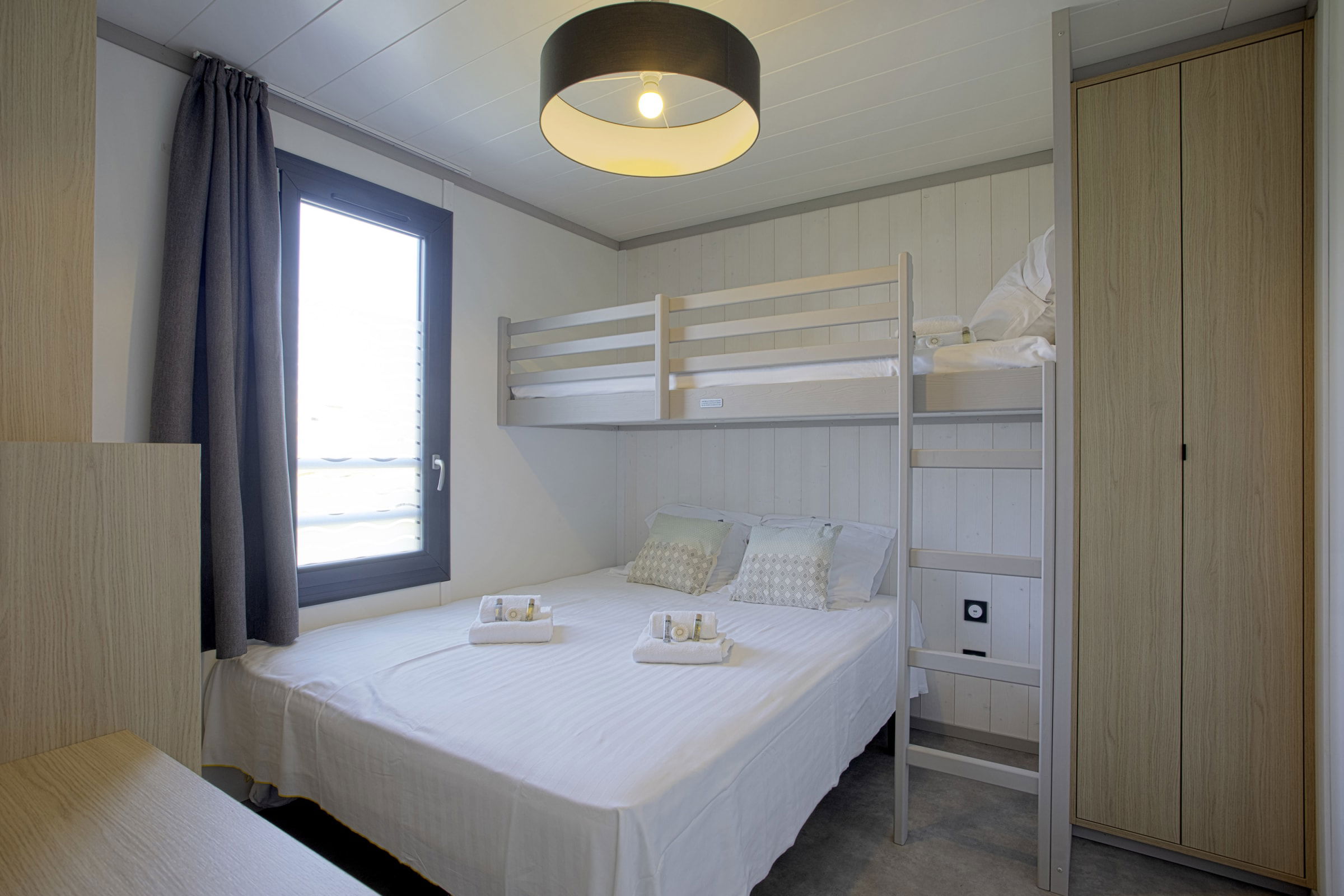 - a bedroom with a double bed and a single bed on the mezzanine,