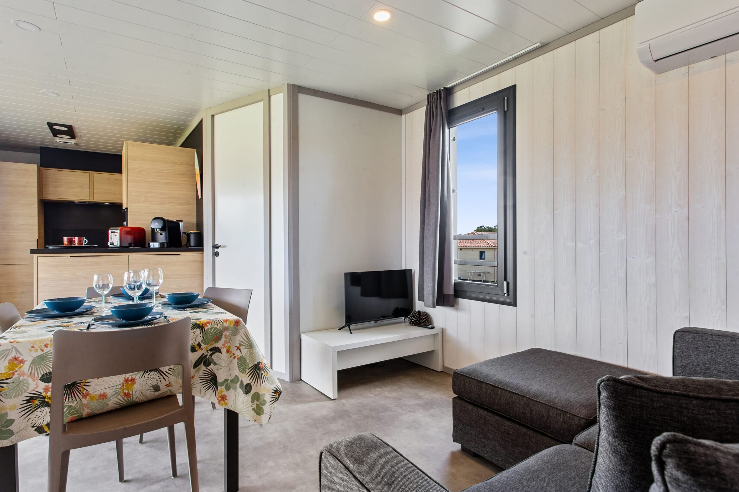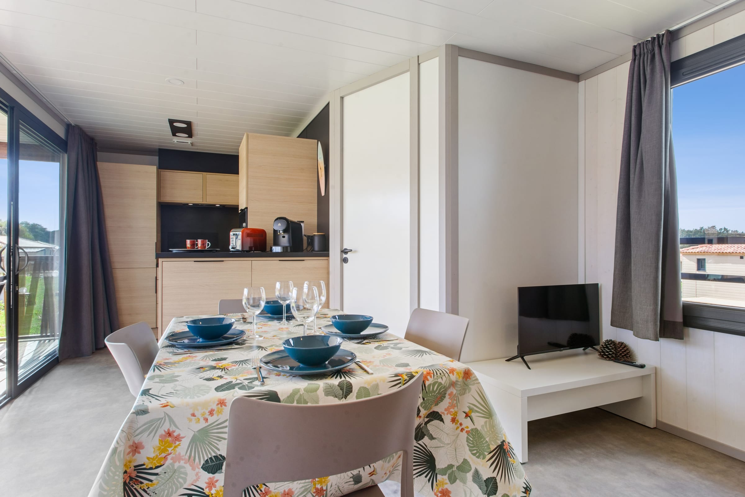 Located in a secure park, this accommodation features an outdoor area and a private parking space. It's the ideal starting point for discovering the Landes and the Basque country.
