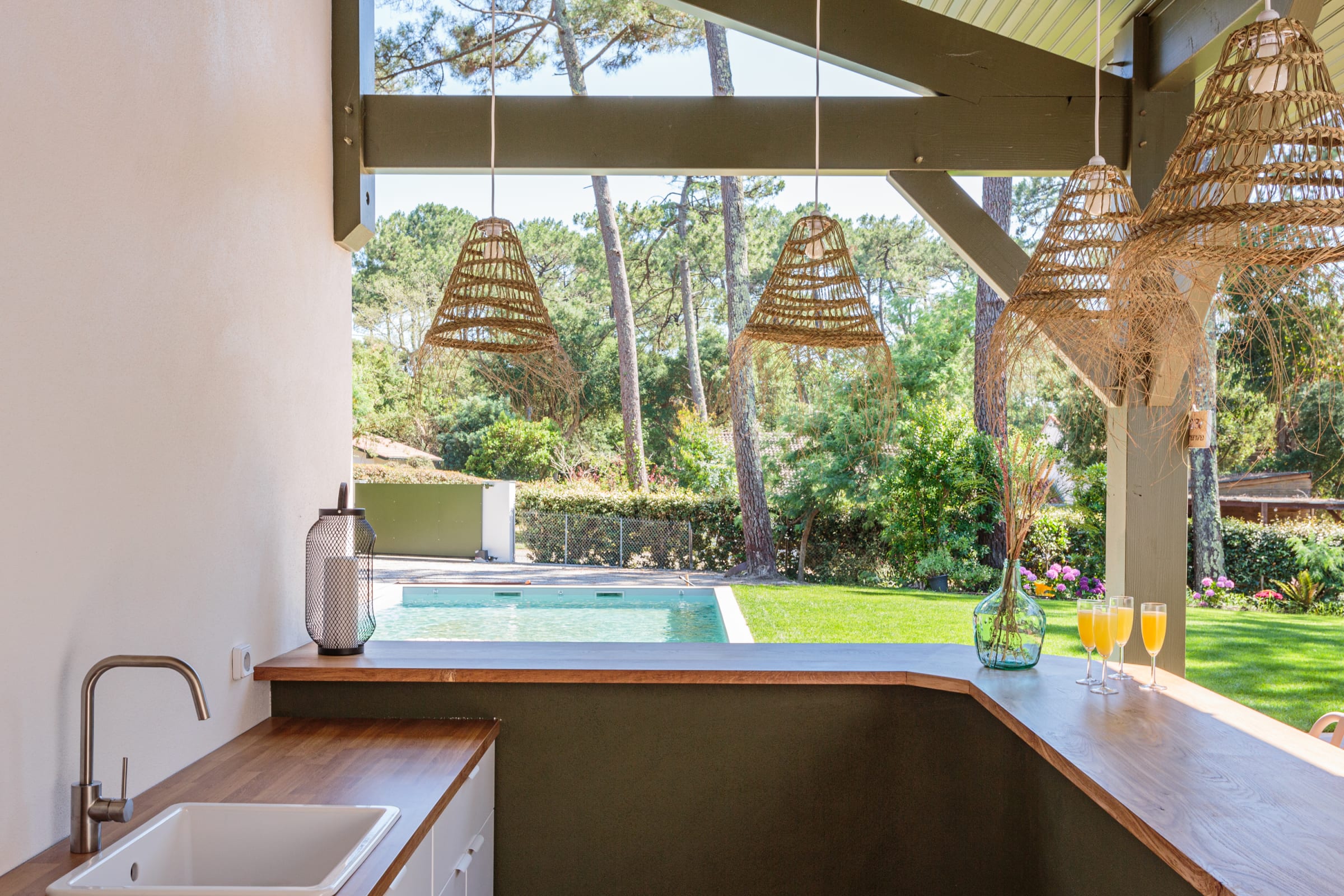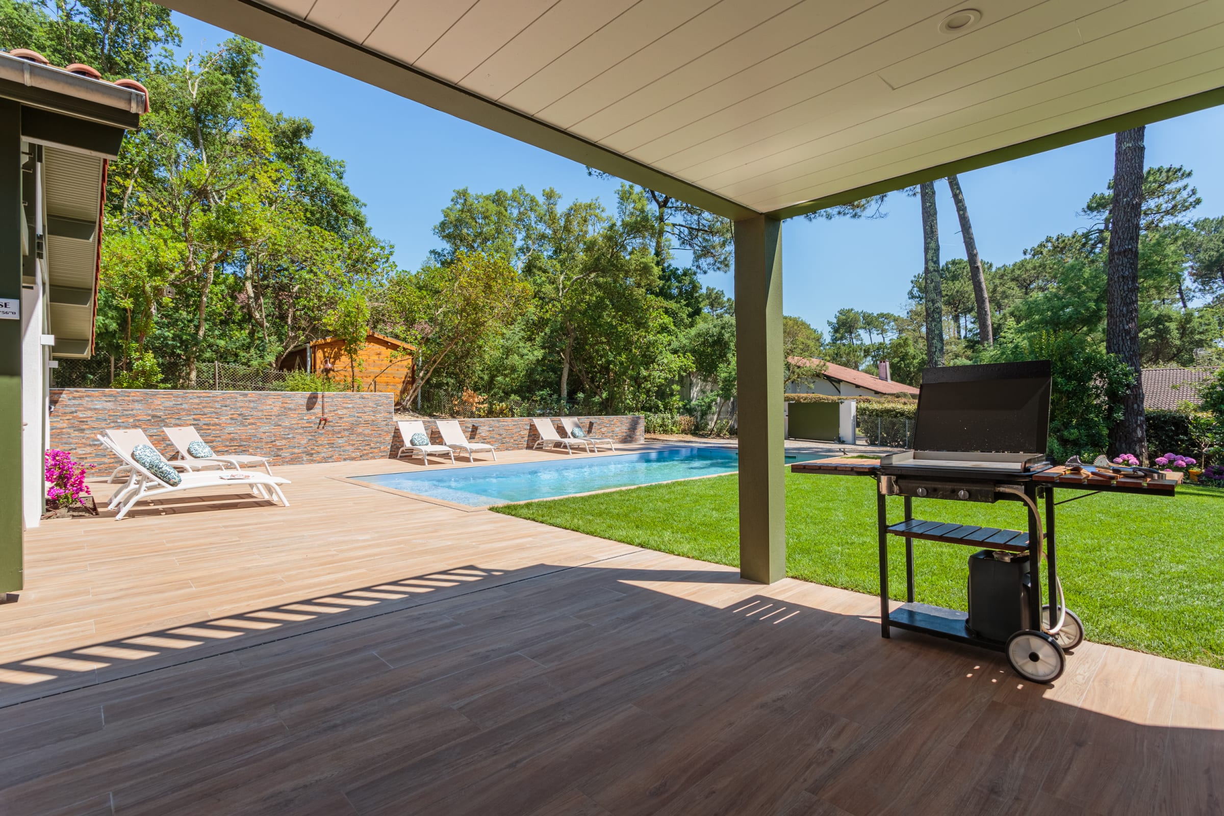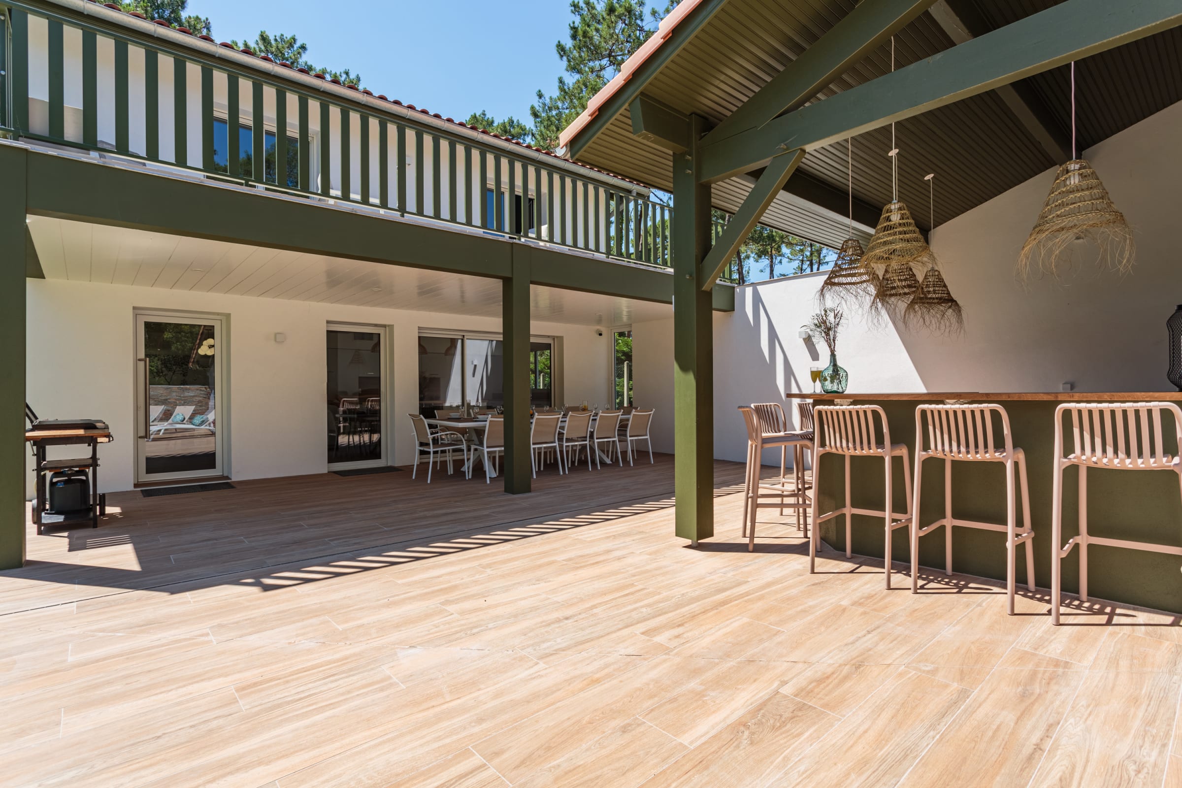 - a 120m² terrace with a large dining table, outdoor bar, barbecue and plancha,